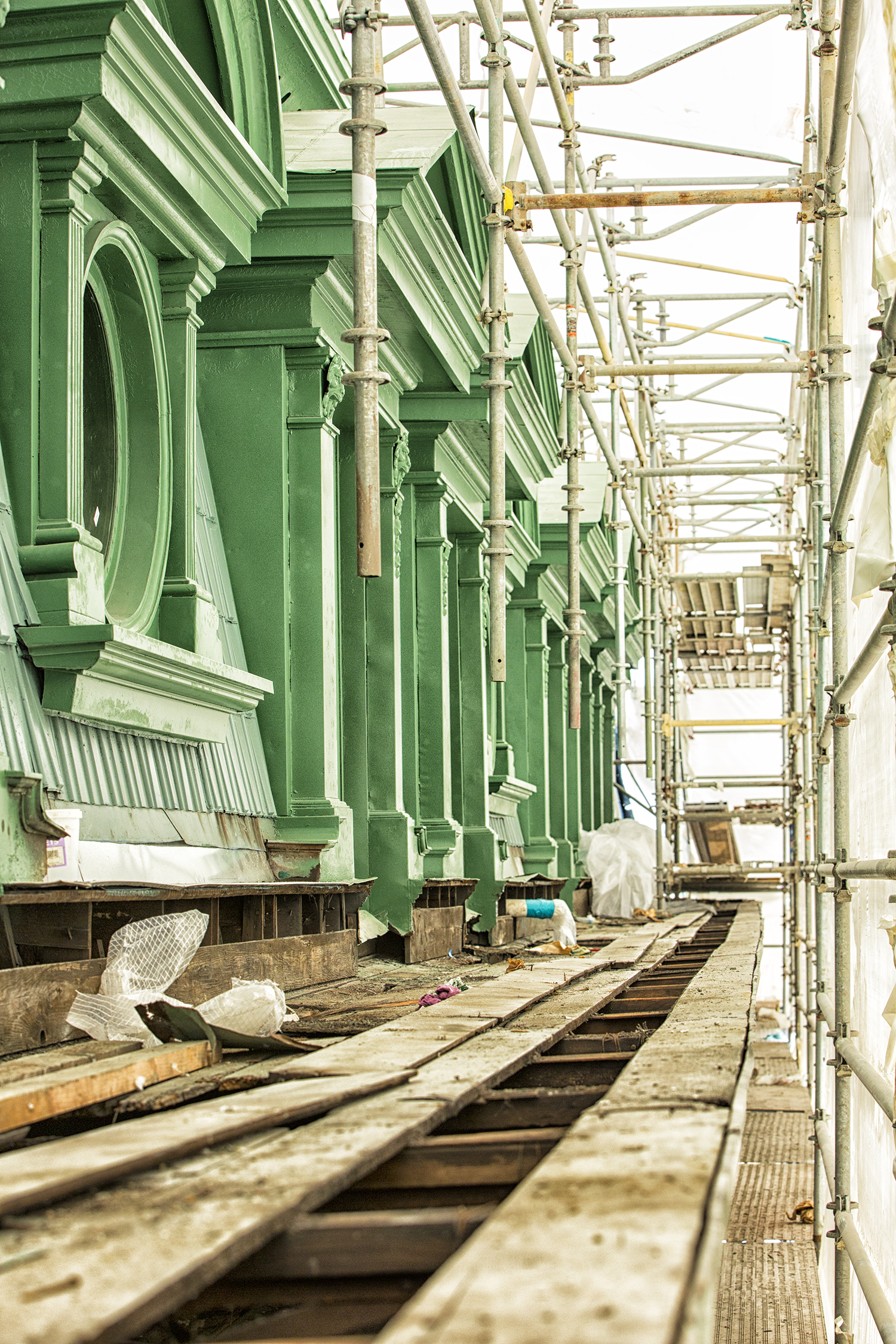 Support pillars reinforced and decking replaced on east span.